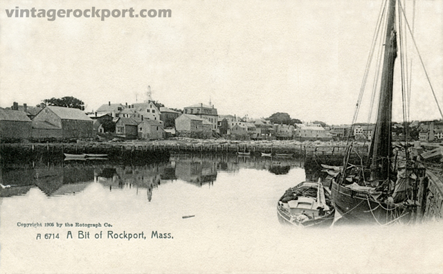 This view of Rockport, taken from White Wharf and looking out over Old Harbor, is copyright 1905 and postmarked 1906. It was published by The Rotograph Co. of New York City.
