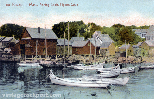 This colorized view of boats in Pigeon Cove is postmarked 1915. It was published by Charles H. Andrews of Pigeon Cove and printed in Germany.