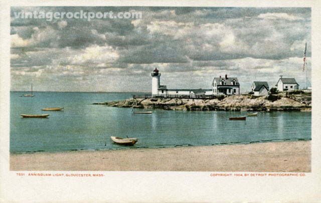 Forgive me this trespass into Gloucester and out of Rockport, but this photograph of the Annisquam Light is so beautiful I could not resist the temptation. Here you see both the postcard and the original image on which it was based.