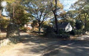 These twin stone towers still mark the entrance to Straitsmouth Way in Rockport. In the image below, you can see the Google Street View perspective of this same scene as it looks today.