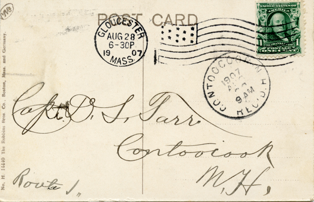 All that is interesting enough, but it is the reverse side that caught my attention when I first saw this card. Note the name of the addressee — Capt. D.S. Tarr, Contoocook, N.H.