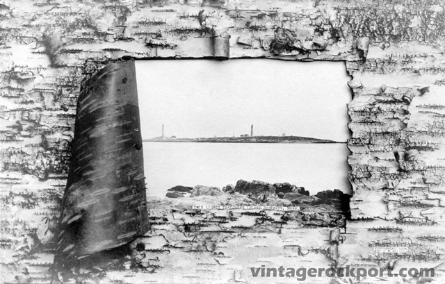 At the Gloucester block party tonight, I stopped in Bodin Historic Photo, where Fred Bodin asked me whether I’d seen any postcards where the image appears to be framed in birch bark. He just acquired several such cards with images of Gloucester, he said.
