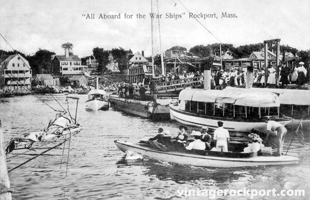 As I’ve noted in several earlier posts, the annual summer visits to Rockport of the U.S. Navy’s North Atlantic Fleet were always a major event, with officers and sailors coming ashore for celebrations of every sort. But the visits were not all one way. Many townspeople and local dignitaries went out and visited the warships as well.