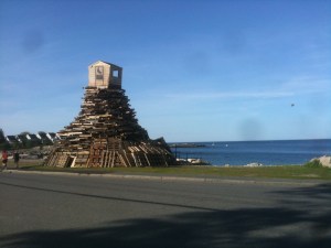 With regard to the bonfire, this is another tradition whose origins are not clear. In a previous post, I noted an 1899 New York Times article about the annual summer visit to Rockport of the U.S. Navy’s North Atlantic Squadron. The article described the festivities the town staged to greet the sailors, including a dance and a banquet. “Bonfires and fireworks also lighted up the shores,” the article said, “although the display was greatly interfered with by the heavy fog.”