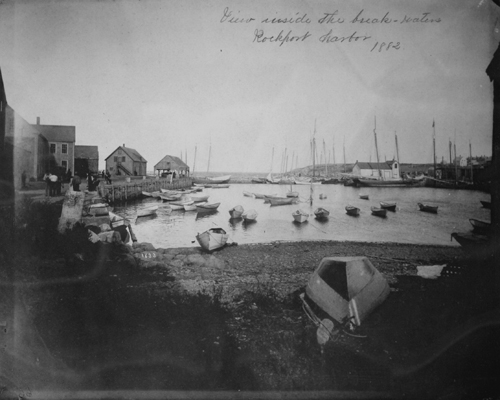 This picture is one of the oldest I’ve come across online. It is captioned, “View inside the break-waters, Rockport harbor, 1882.” It comes from the image collection of the National Marine Sanctuaries division of the National Oceanic & Atmospheric Administration.