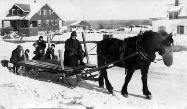 The reverse of this real-photo postcard has the inscription, “Your old friend John Hooper.” Hooper may be the sleigh driver, but that is just conjecture.