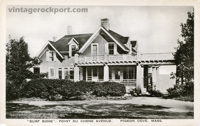 At the time of this picture, Surf Song, located on Point de Chene Avenue in Pigeon Cove, was the summer home of Mr. and Mrs. Frederic H. Ripley and their daughter Grace. Mr. Ripley