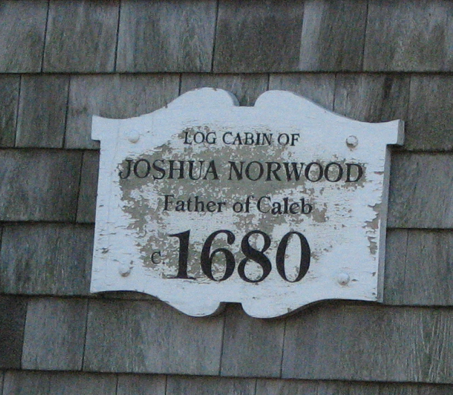 The house was built in the cove and was situated in the area of Andrews point and was later moved to the location on Atlantic Ave by floating it on a wooden barge. The plaque used to say Caleb Norwood cabin, but was changed when discovered that it was actually Joshua that built it.